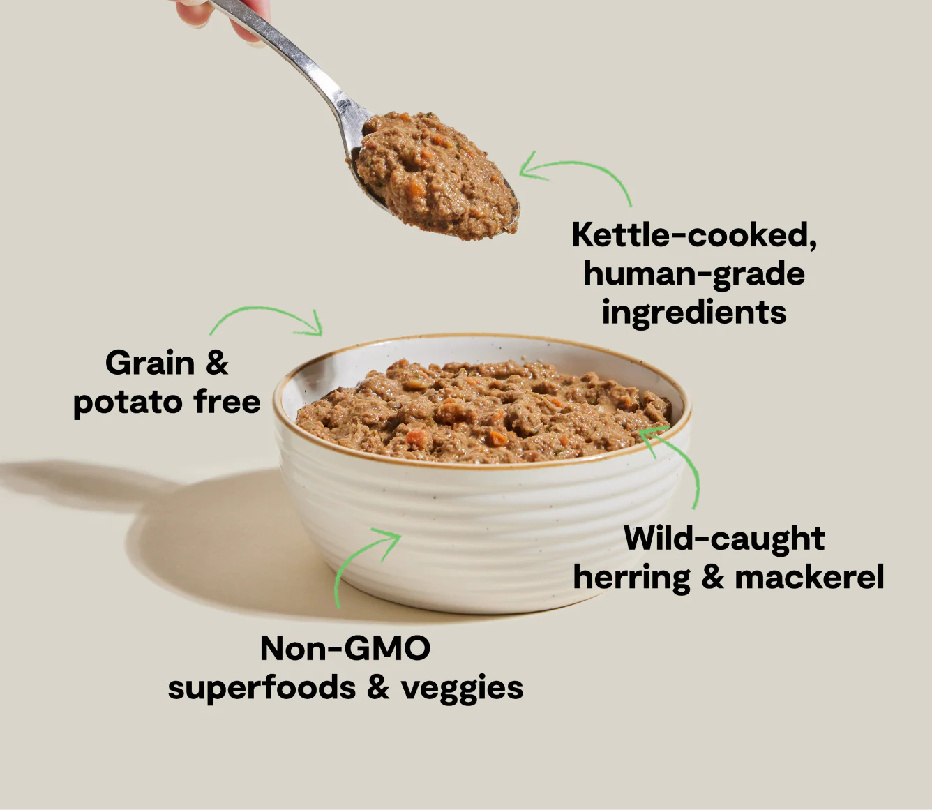Boost their bowl with savory chunks of Ocean Wise recommended wild-caught herring and mackerel, and non-GMO superfoods and veggies – all human-grade ingredients kettle-cooked to perfection. Mix this juicy rustic stew with your dog's meal to maximize nutrition or serve by itself as a complete and balanced diet. Grain- and potato-free.