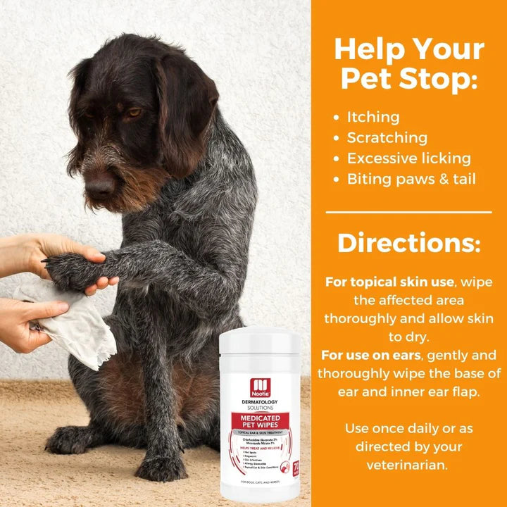 Nootie Medicated Antimicrobial Wipes are formulated to help relieve and heal symptoms due to skin infections caused by bacteria, fungi, and yeast. Ideal for pets with ringworm and helps prevent hot spots if used early on flea bite dermatitis. Your pet’s coat will be shiny and soft.