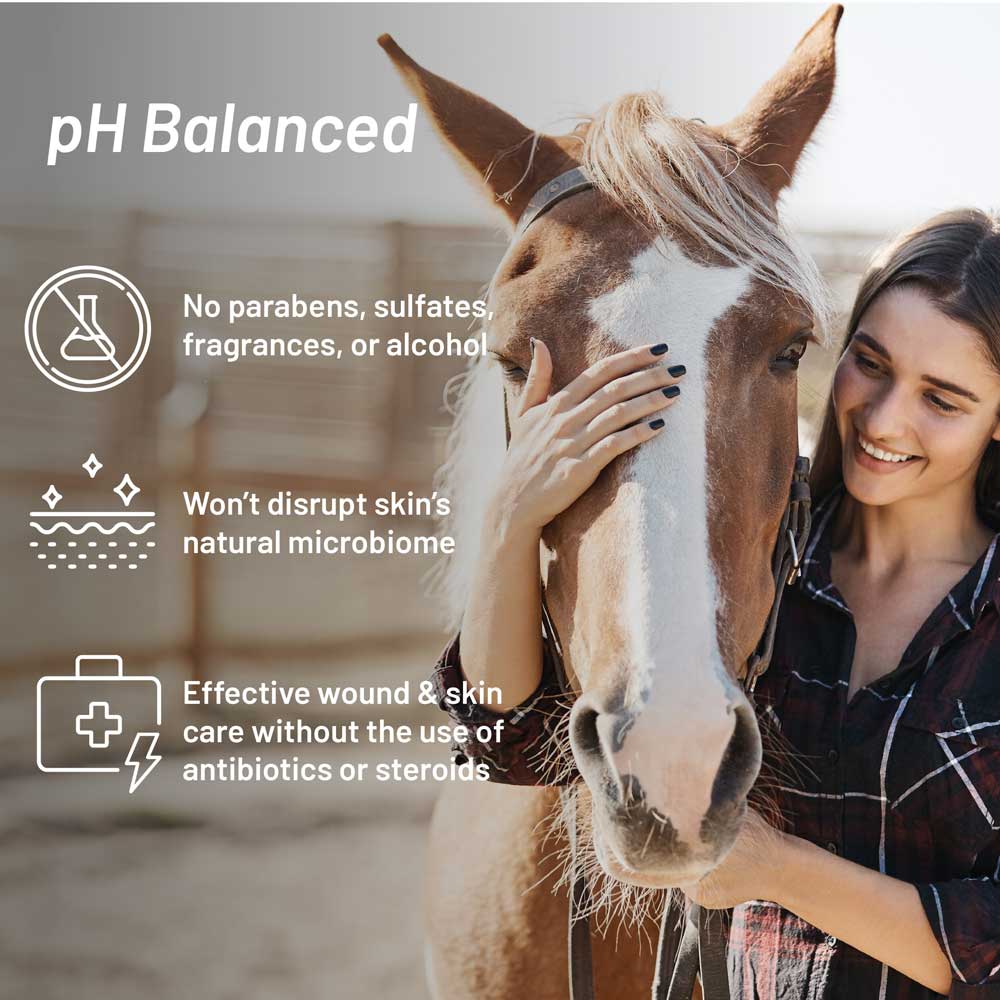 Silver Honey® Soothing Conditioner is the only equine conditioner powered by the healing strength of Manuka Honey and MicroSilver® BG, delivering targeted hydration and natural antimicrobial support to help soothe irritated, sensitive skin. This rich yet gentle formula deeply nourishes and conditions the coat, mane, and tail, leaving a radiant, healthy shine without added fragrance or harsh chemicals. Ideal for use after bathing or as a leave-in treatment, it helps support skin recovery, maintain coat health, and protect against bacteria, fungi, and yeast—making it the premium choice for equine skin and coat care. For best results, use with Silver Honey® Medicated Shampoo. 16 fl oz Bottle.
